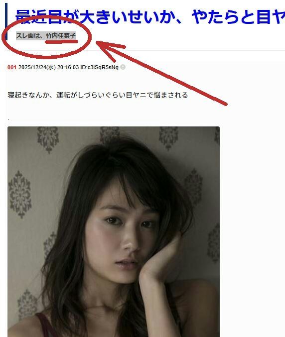 スレッドタイトル : 最近目が大きいせいか、やたらと目ヤニが出る スレ画は、竹内佳菜子